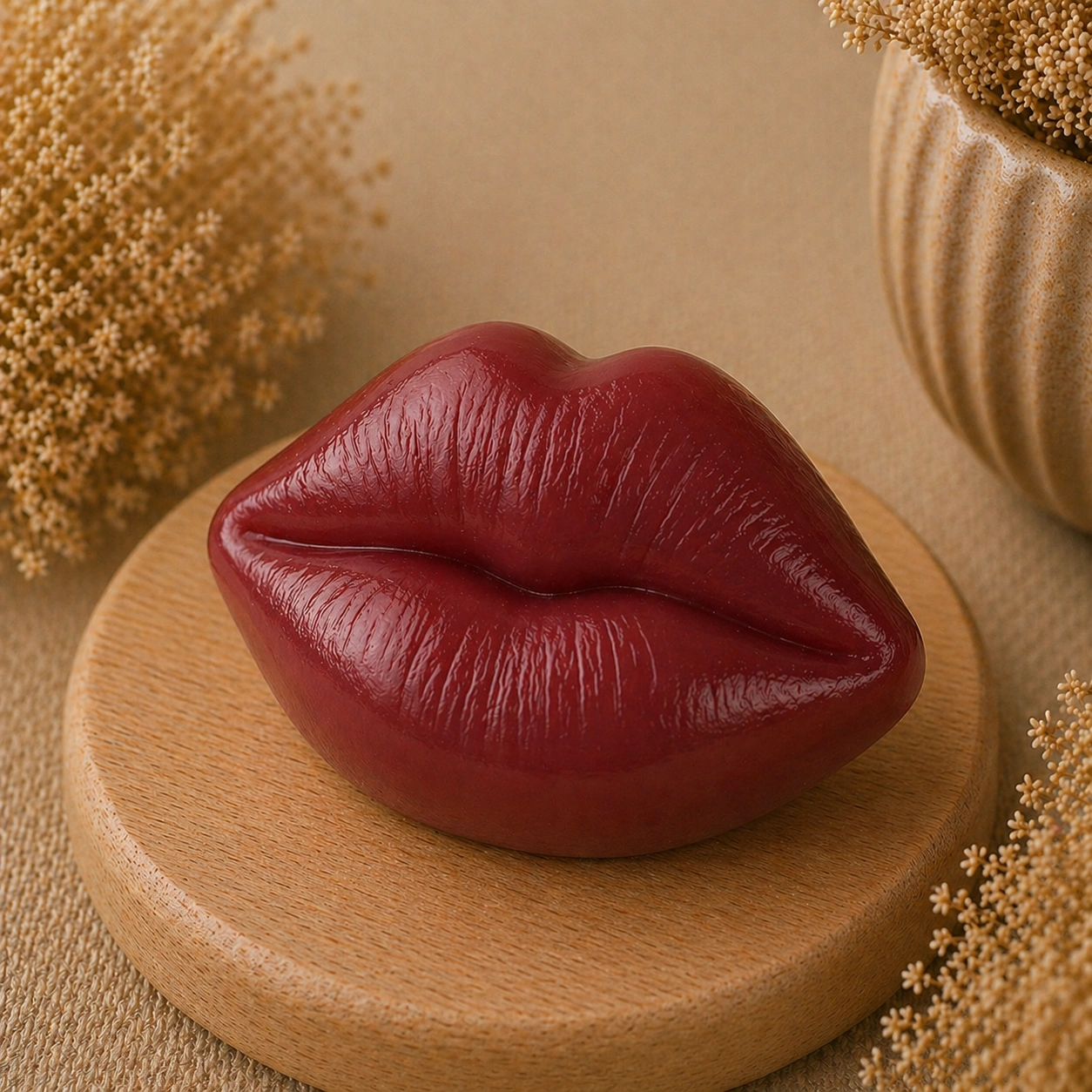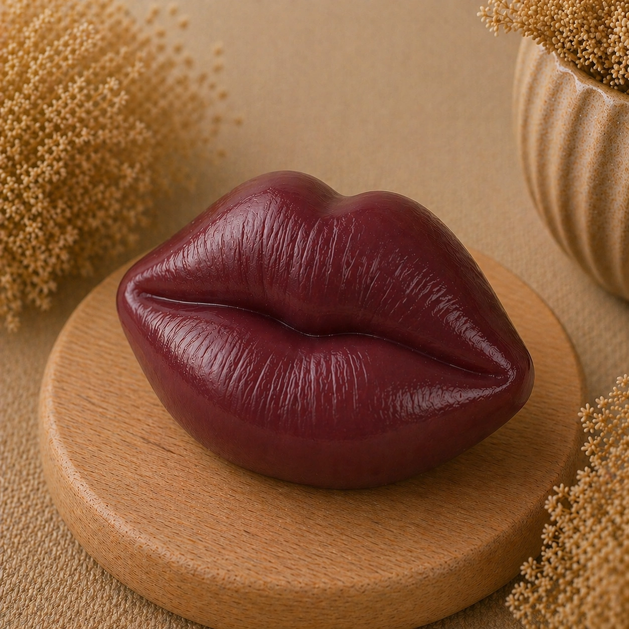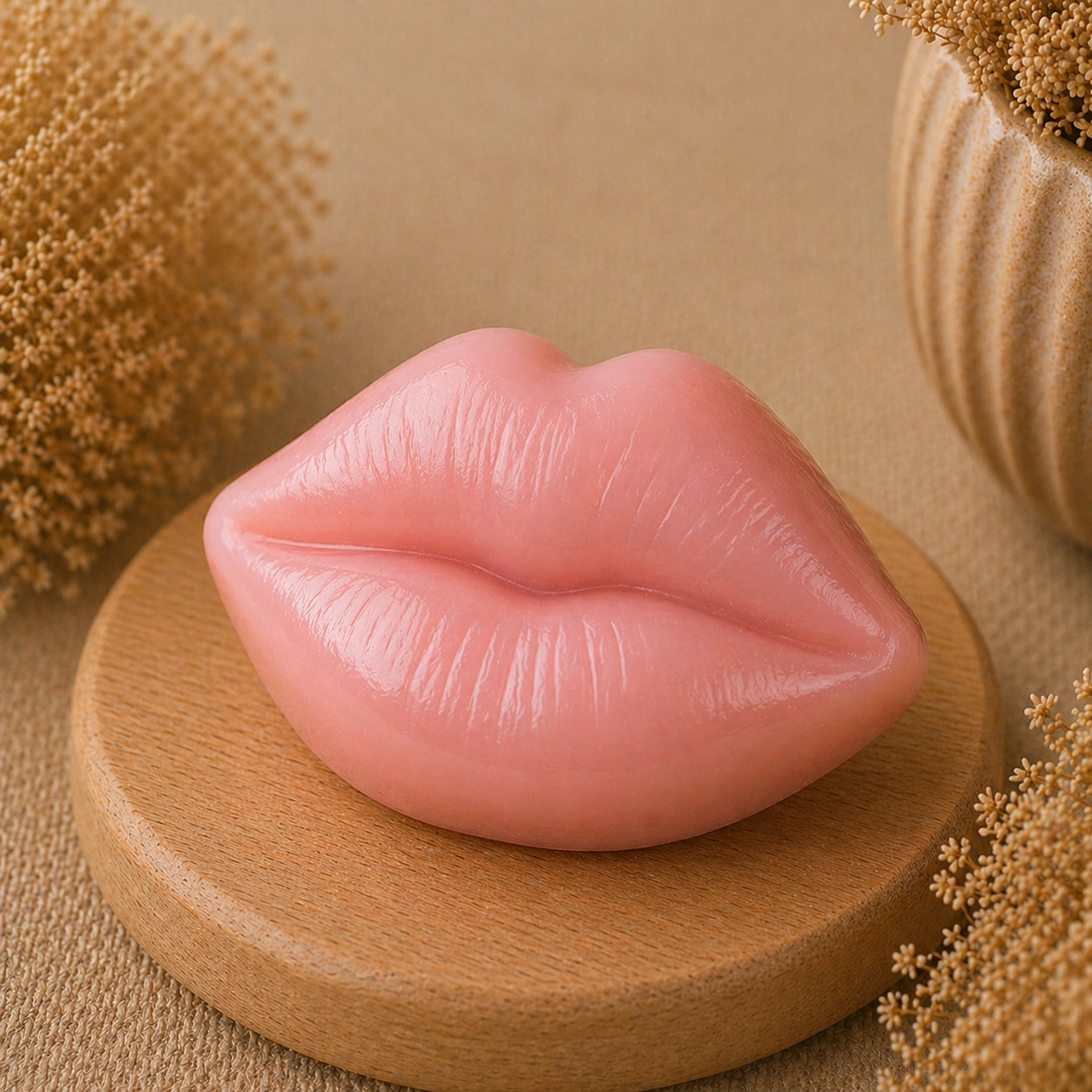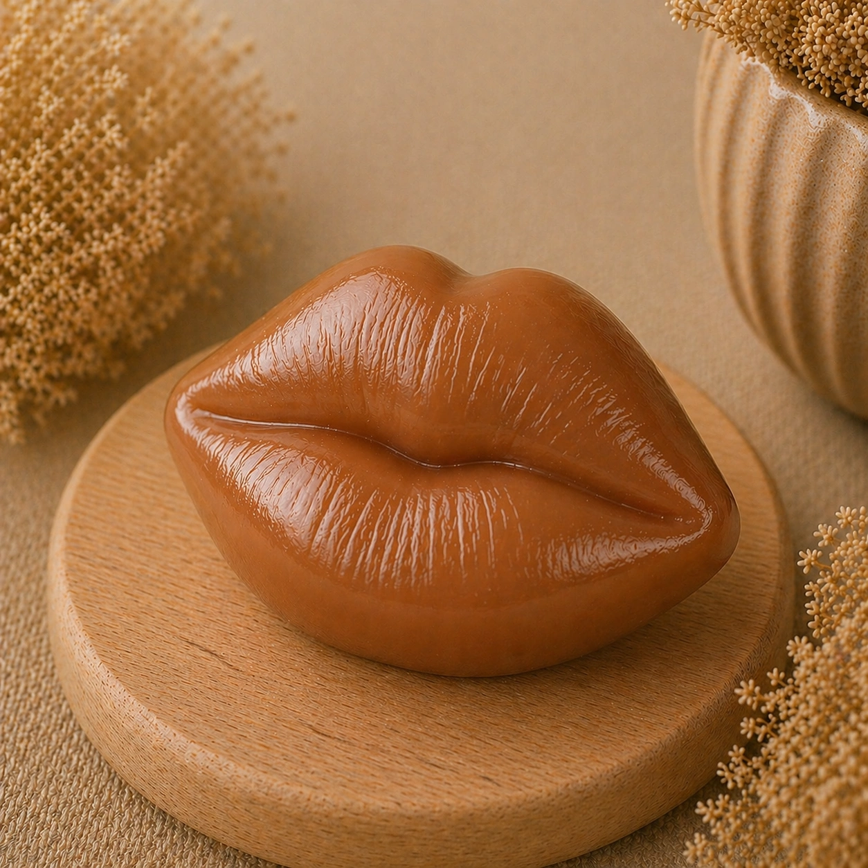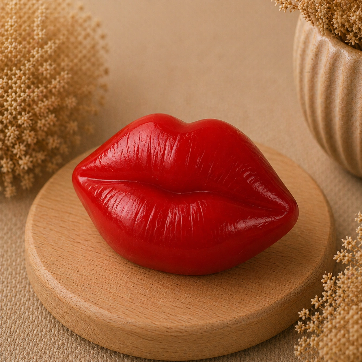 Мыло LediLami выполнено в форме объёмных губ с плавными линиями и реалистичной текстурой.