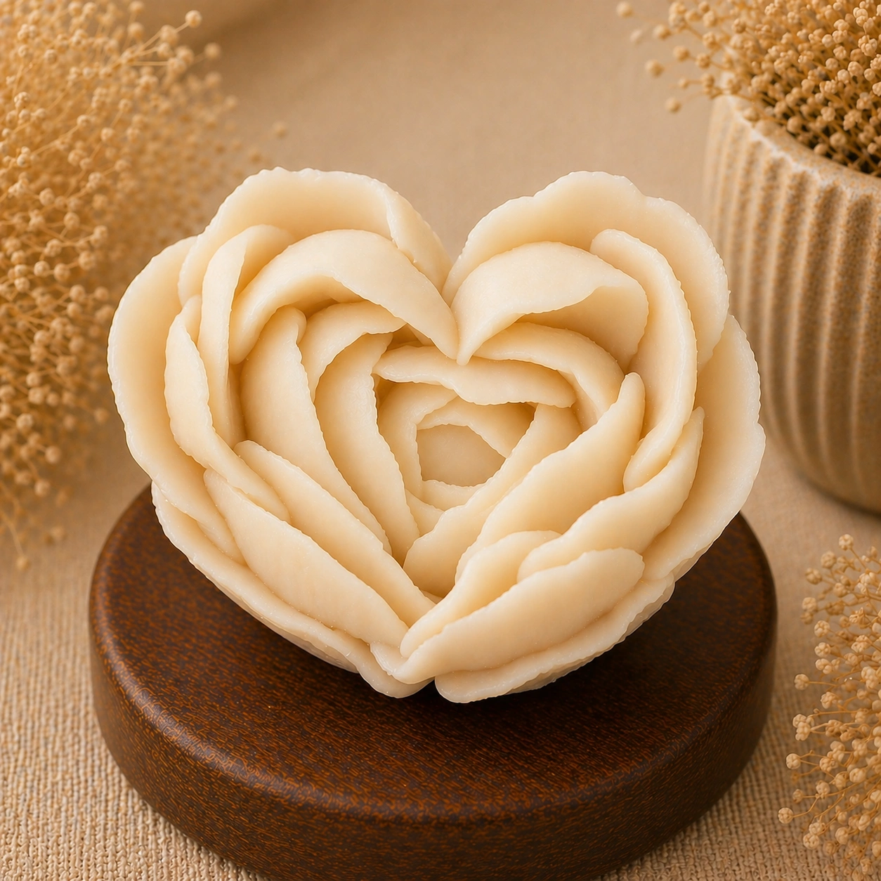 Мыло LediLami выполнено в уникальной форме сердца, собранного из лепестков розы.