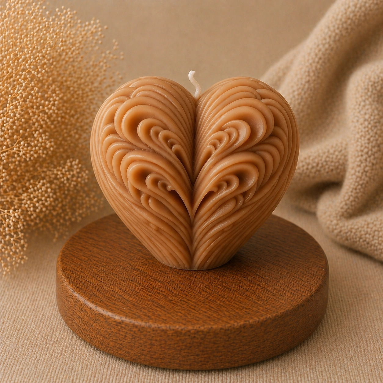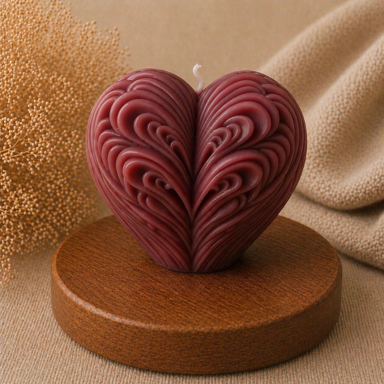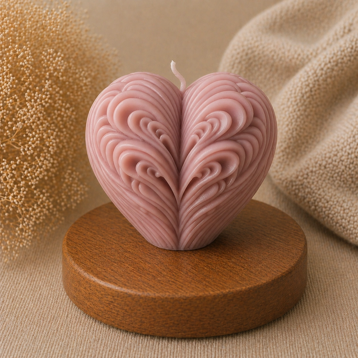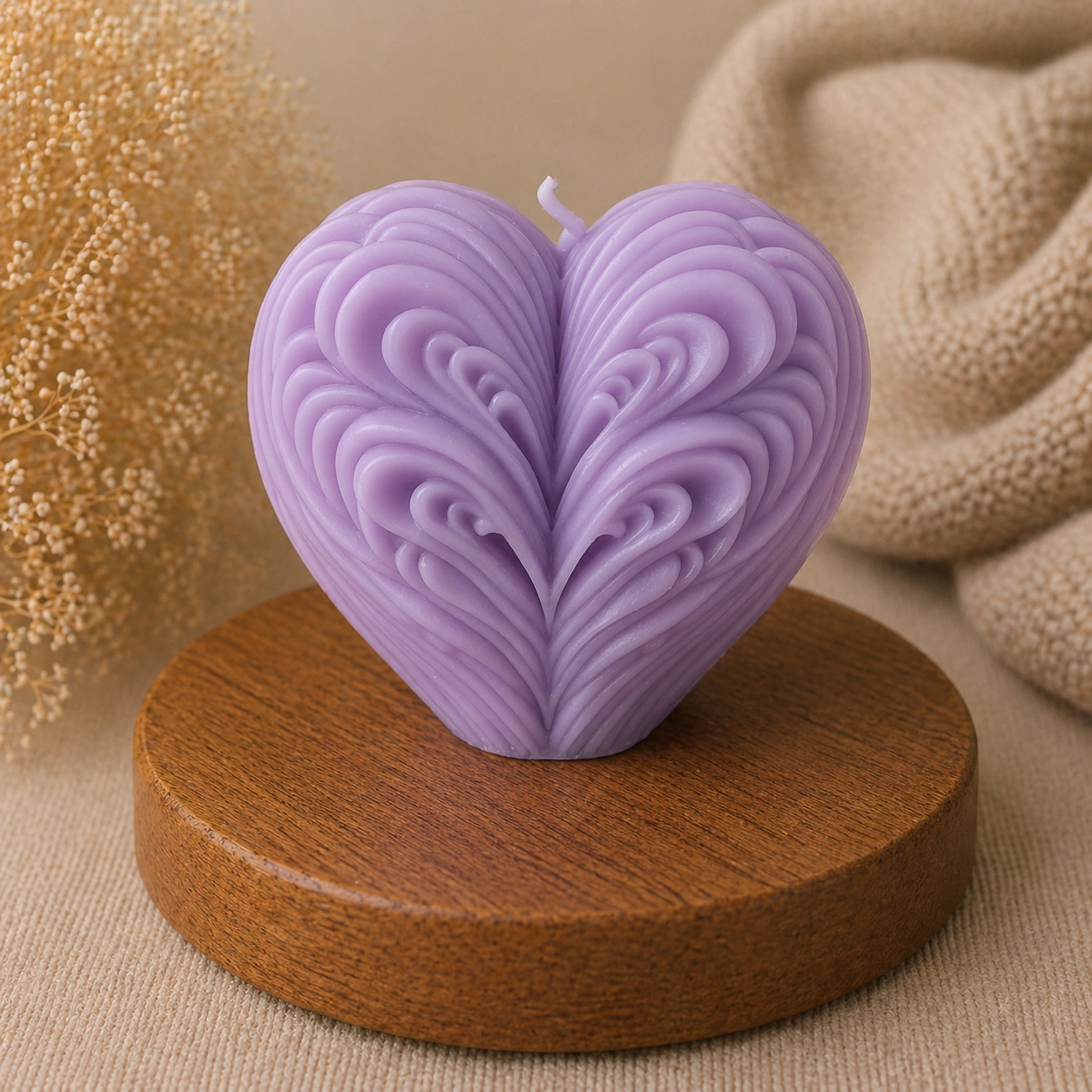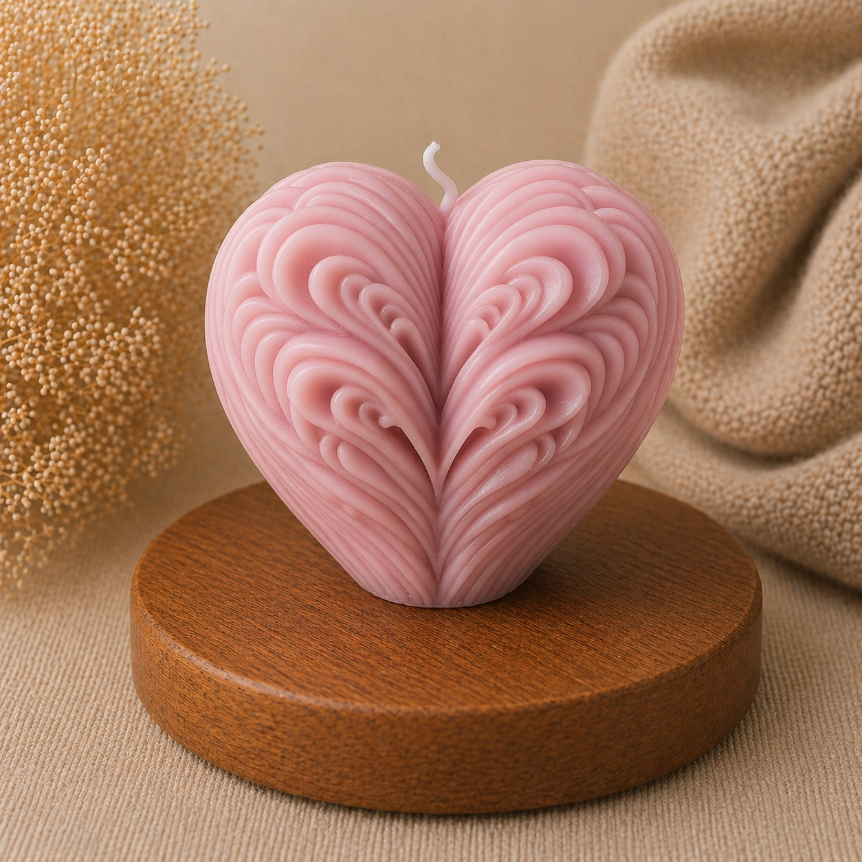 Мягкие линии и плавные переходы делают форму визуально «живой» и притягательной. Свеча отлично подходит для подарков, романтического декора и уютной атмосферы.