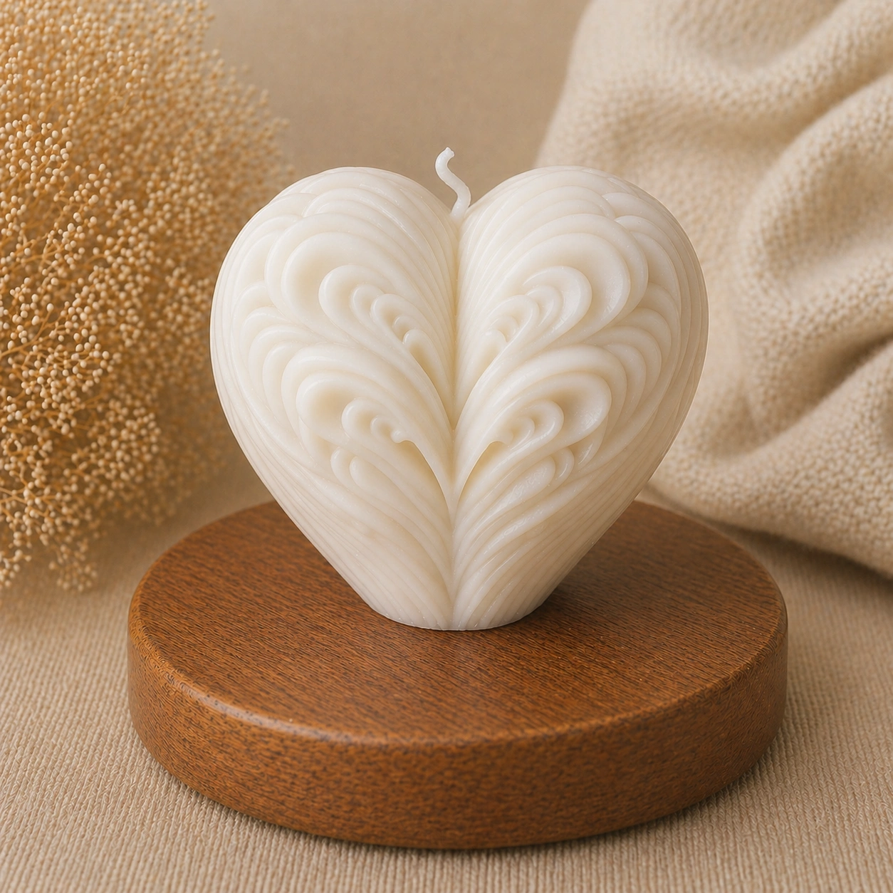 Свеча LediLami «Резное сердце» выполнена в форме сердца с изящным волнистым рельефом. Симметричный узор создаёт эффект глубины и напоминает ручную резьбу, благодаря чему свеча выглядит необычно и выразительно.