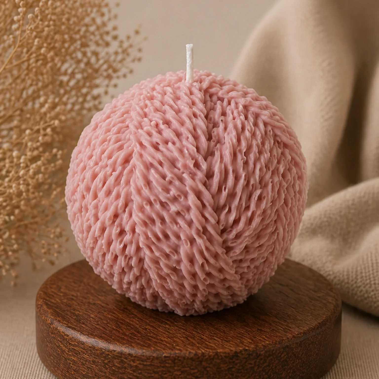 Свеча LediLami «Текстурный шар» выполнена в форме сферы и украшена выразительным рельефом, напоминающим переплетённые нити. Объёмная фактура создаёт интересную игру света и тени, благодаря чему свеча выглядит необычно и привлекает внимание.